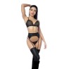 Timeless with a rebellious edge. This three-piece set stuns in allover fishnet mesh, featuring a top with adjustable straps, a matching panty, and garter belt. Care instructions : Hand Wash. Do not Bleach. Do not Iron. Composition : Top: Self Fabric: 97% Polyester 3% Elastane 100% Polyurethane Coated Mesh 93% Polyamide 7% Elastane Country of origin : Colombia